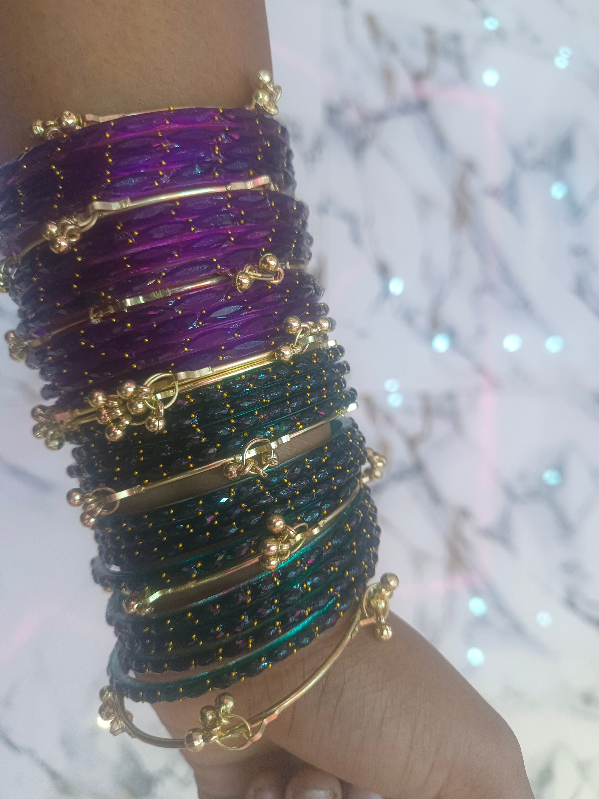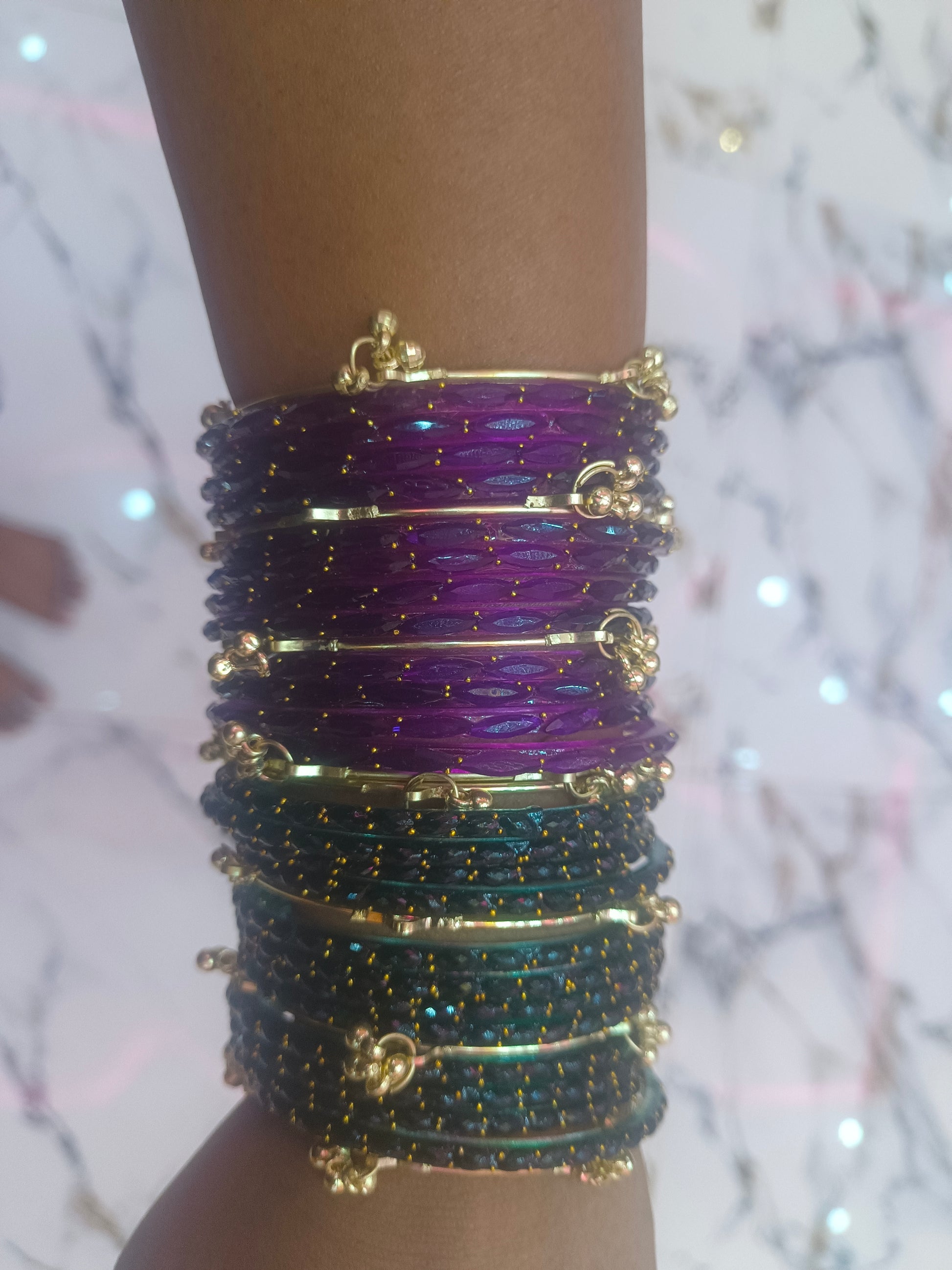 Kashmir ke baagon ki haryali aur wahan ke phoolon ki rangat ko humne in chudiyon mein piroya hai.